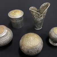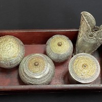 Tepak sirih merupakan perlengkapan untuk upacara adat dengan kotak kayu hiasan sirip ikan dan cangkang kerang